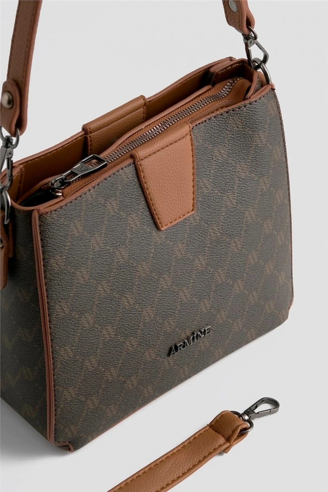 Armine Çanta 348 Kahve Noktalı, şık tasarımı ve kaliteli malzemesiyle öne çıkan bir çanta modelidir.